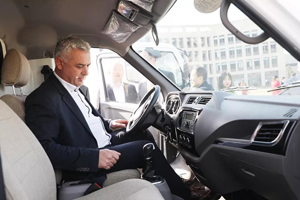 隨后,董楠又向代表團(tuán)介紹了我司的新能源專用車和新能源物流車,議會(huì)主席荷賽·路易斯·貝加·貝雷斯饒有興致地試乘了新能源物流車,并詢問(wèn)了電池的質(zhì)保年限、續(xù)駛里程等,董楠對(duì)主席進(jìn)行了詳細(xì)的講解,充分展示了我司的研發(fā)實(shí)力和制造能力。