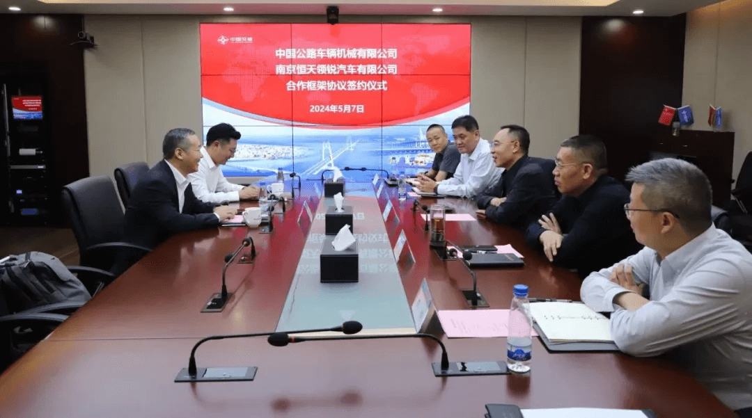 5月7日,南京恒天領(lǐng)銳汽車有限公司與中國公路車輛機械有限公司正式簽署框架合作協(xié)議。恒天領(lǐng)銳董事長汪先鋒、銷售公司總經(jīng)理馬志鵬與中國公路車輛機械有限公司黨委書記宋金剛、副總經(jīng)理李永、新興產(chǎn)業(yè)事業(yè)部總經(jīng)理張永強、重慶分公司總經(jīng)理李明、重慶分公司執(zhí)行總經(jīng)理周磊出席簽約儀式。